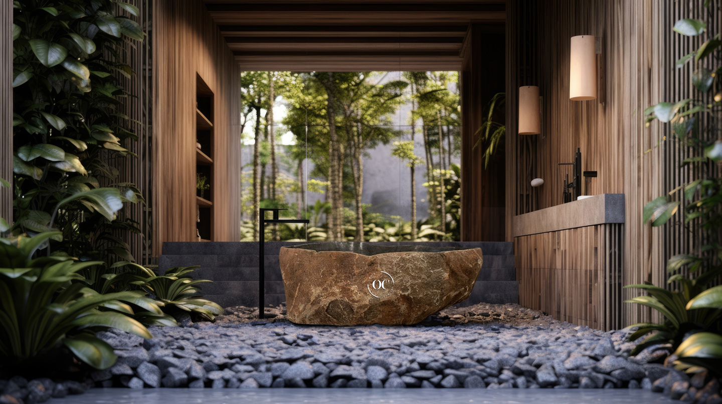 Our bathtub is made of natural stone. Made of only one piece of stone always. Every Freestanding Natural Stone Bathtub is cut and manually drained by our best craftsmen in Indonesia. The outside remains unchanged, just as it was created by Mother Nature, while the inside is meticulously polished. We can produce it in the size, shape, and shade you desire as we take stone directly from the source. That’s why we ensure that the client receives the boulder bathtub that best matches their desired specifications!