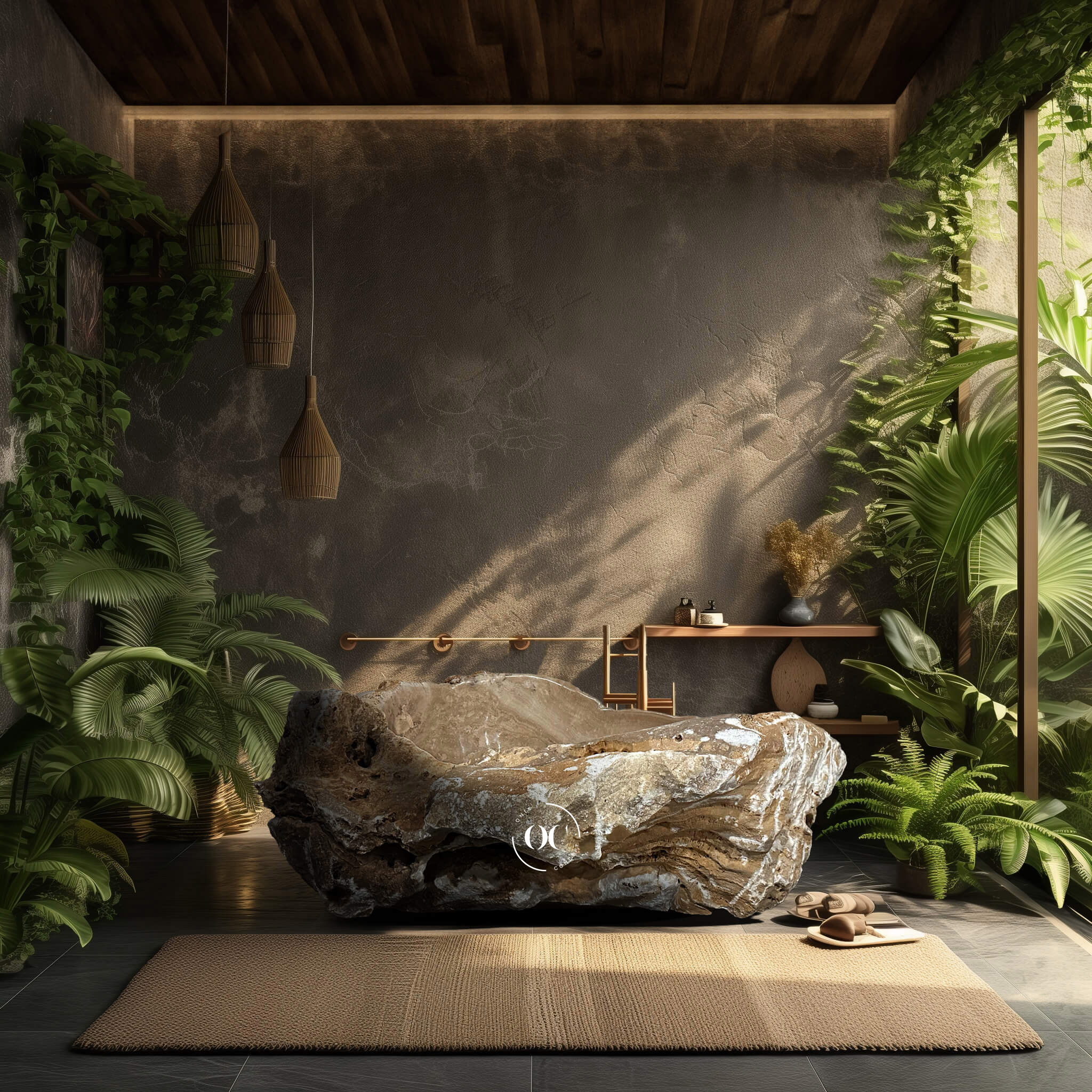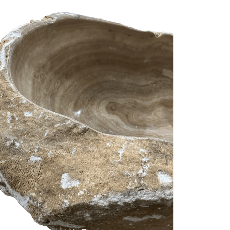 The Natural Stone Concept freestanding bathtub is made of natural onyx stone. Note that it is always made only from one piece of natural onyx stone. It is cut and manually drained by our best craftsmen in Indonesia. The outside is either hammered or carefully polished, the effect is visible in the pictures, and so is the inside. Every onyx bathtub may come in different sizes and shapes as every piece of rock varies from another. Please also notice that this natural stone, made of onyx, can be effectively illuminated.